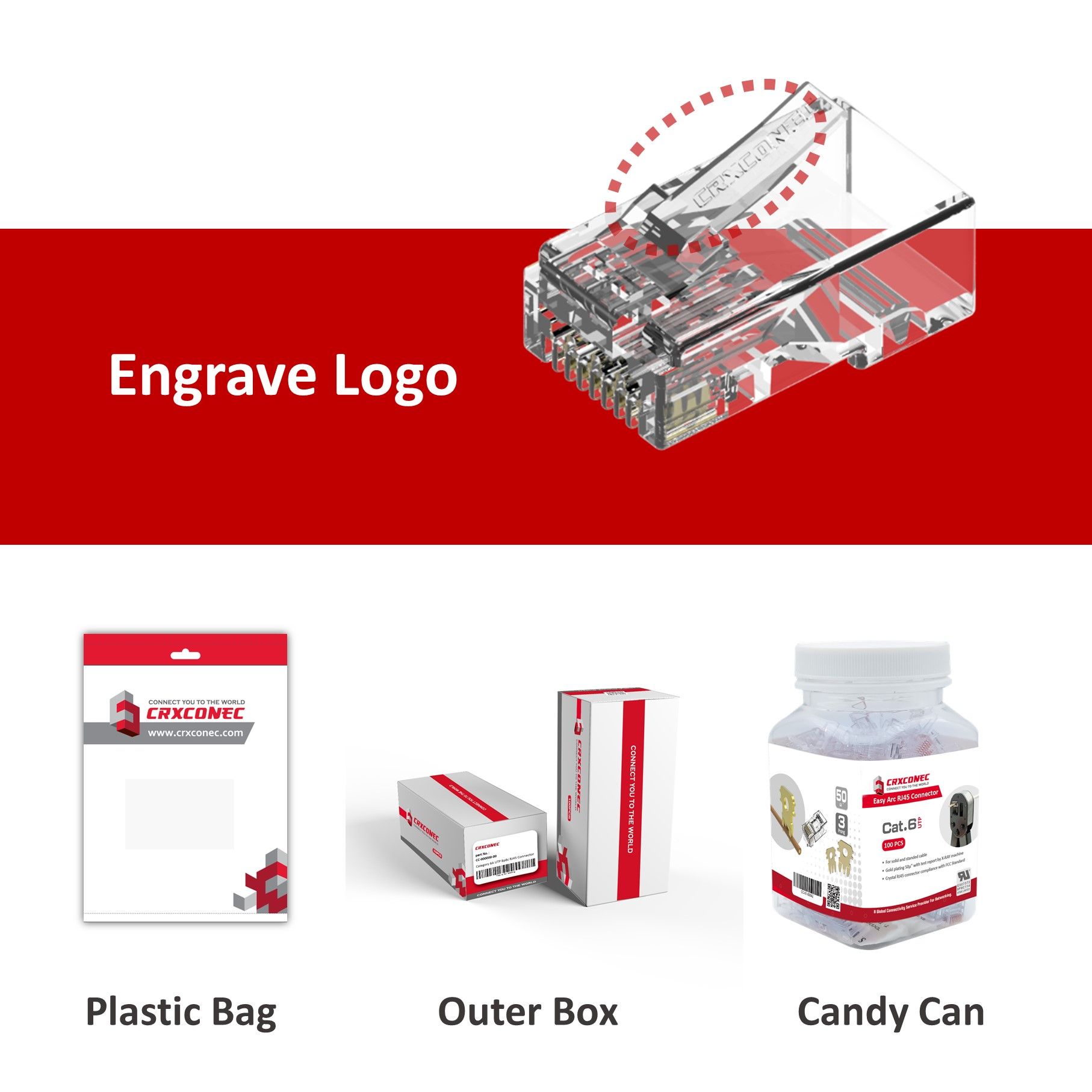 The special larger wire hole 1.2mm to fit with the strong solid cable Jacket. The open pass through design offers more efficient on assembly and provide good connection without damage the twisted pair of cables. The 3-prong contact blades can reduce the crosstalk between twisted pairs of Ethernet cable and ensure solid connection. Plenty of brand cabling companies choose our plugs to provide professional installer and DIY market needs.