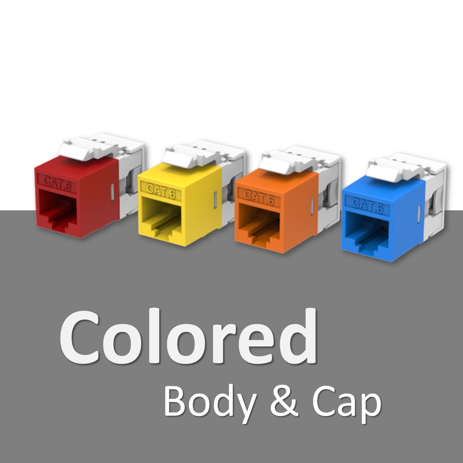 There are lots of colors for choices to make your own unshielded slim type punch down keystone jack. You can color two parts of the keystone jack, one is near the front port part and another is the rear side with the IDC module. Or you could choose one color for the whole RJ45 keystone jack body and make different colors on the cap.
