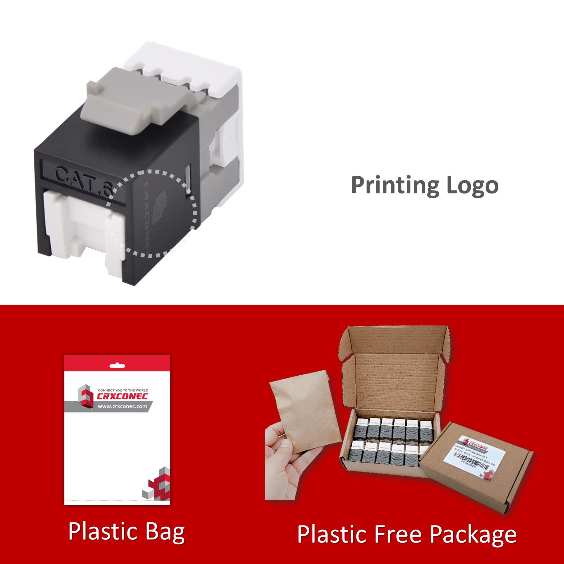 Every keystone jacks are in different shapes, so the crimping tools are not allowed to work with keystone jack manufactured by others. Crxconec provide...