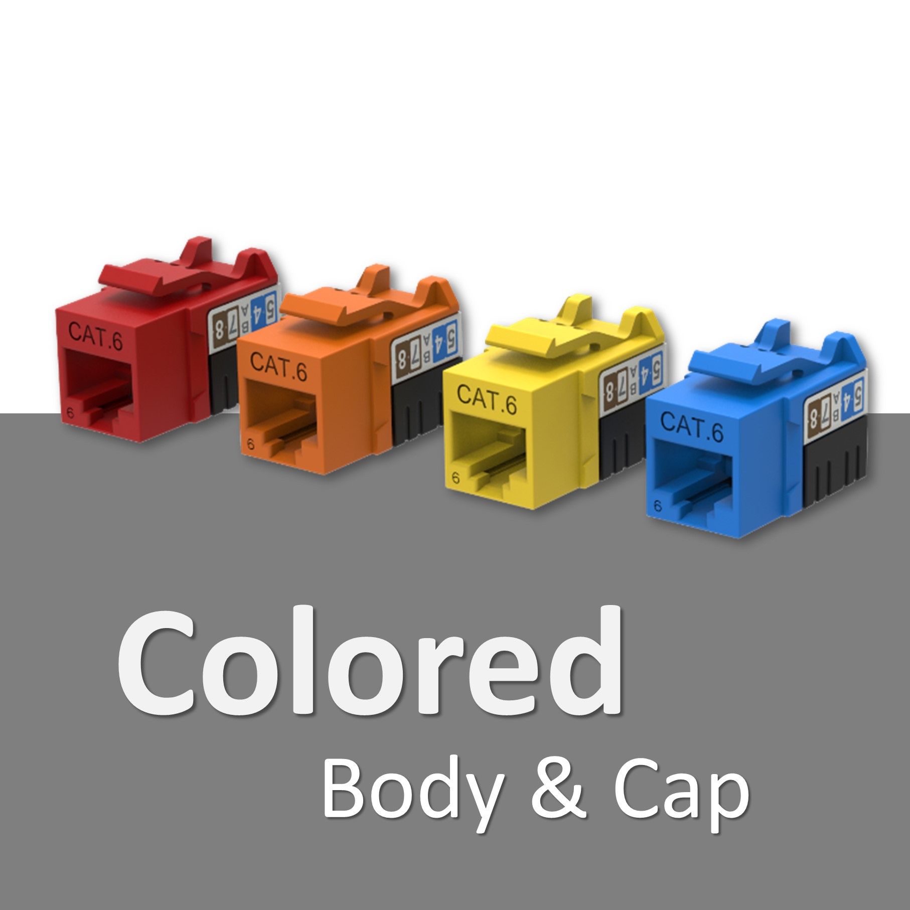 There are lots of colors for choices to make your own unshielded 90 degree punch down keystone jack. You can color two parts of the RJ45 keystone jack, one is near the front port part and another is the rear side with the IDC module. Or you could choose one color for the whole RJ45 keystone jack body and make different colors on the cap.