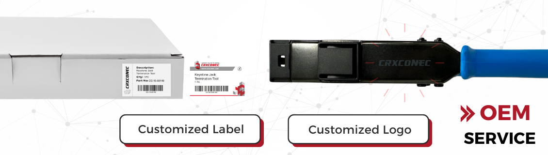 CRXCONEC offers flexible OEM support, including private labeling, customized packaging, and bundled solutions that combine termination tools with compatible keystone jacks. This approach helps OEM brands move from selling individual components to offering a complete, installer-ready termination solution, enabling a more cohesive and practical product presentation. By pairing functional installation tools with a consistent visual identity, brands can increase visibility among system integrators and installers, reinforce a professional and installer-friendly image, and support long-term brand recognition and market expansion.