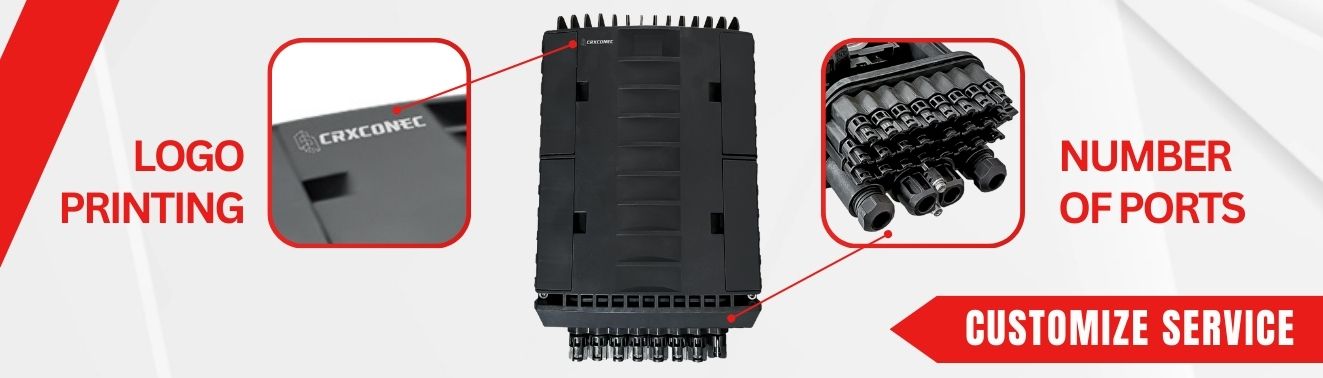 CRXCONEC's OEM service on the 24-port outdoor optical fiber splice box is highly preferred by brands. We can design both the size of the fiber distribution box and the number of ports. Additionally, we offer logo printing or labeling for packaging, making it easy to promote your brand through our OEM branding service. Feel free to reach out to us for more information.