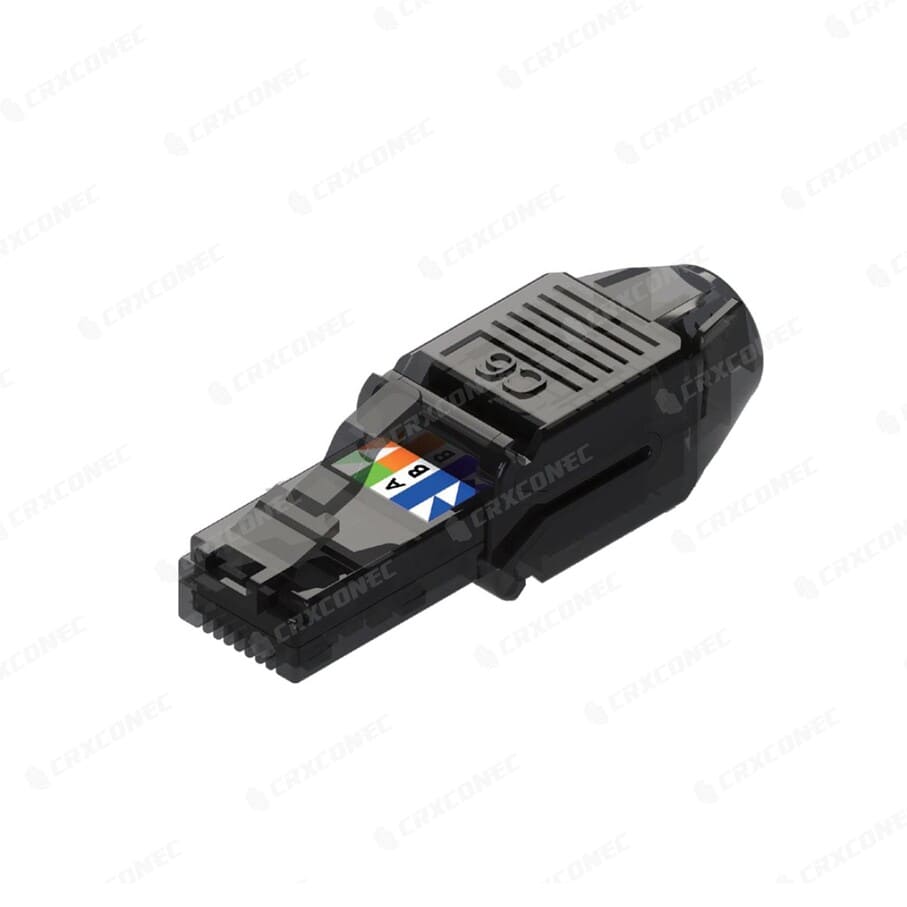 El conector UTP RJ45 negro vidrioso sin herramientas es fácil de ensamblar en el centro de datos.