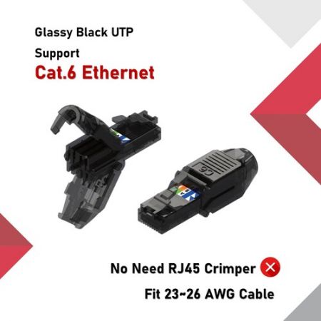 - Conector de terminación de campo UTP Cat6 Glassy Black sin herramientas, 10G Ethernet-1
