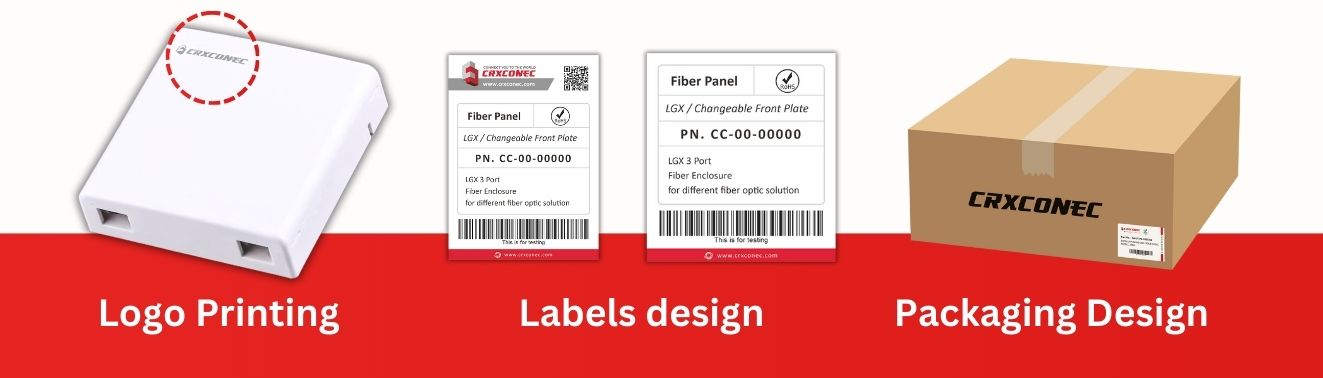 Ez az FTTH 2-eres beltéri száloptikai végdoboz testreszabható opciókat kínál, hogy pontosan megfeleljen a márkaépítési igényeknek. Kiválaszthatja a logónyomtatást a 2 portos száloptikai előlapra, vagy elláthatja a csomagolást a saját márkájával, beleértve a kartondoboz tervezését és a logós címkét is.CRXCONECAz OEM és ODM szolgáltatásai biztosítják, hogy az Ön egyedi igényeihez igazítható legyen, segítve márkája imázsának növelését és egyedi követelményeinek kielégítését.