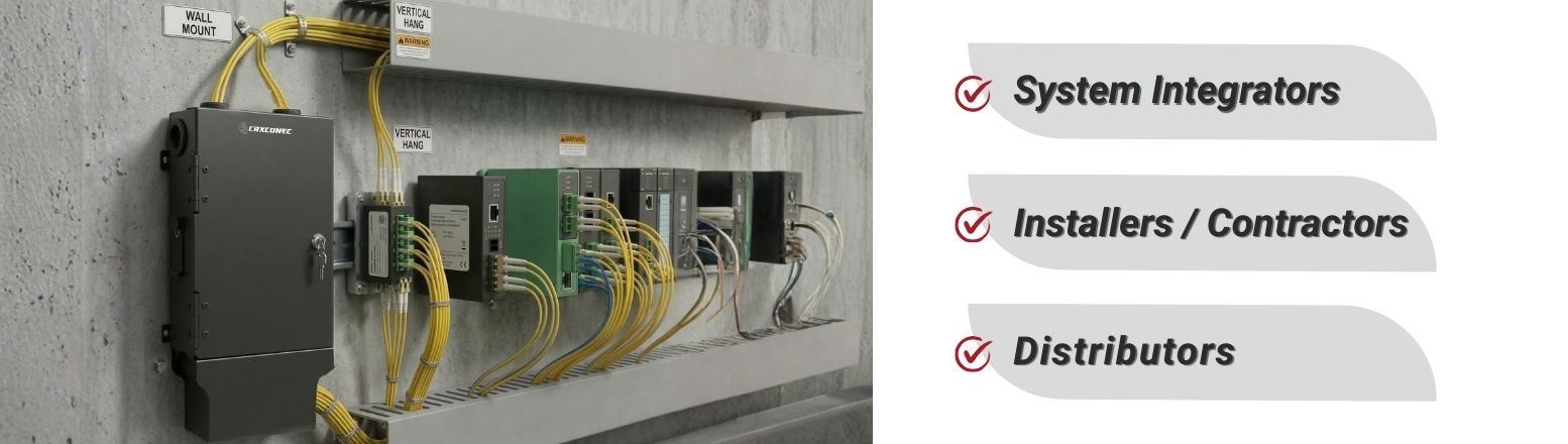 - Az ipari automatizálási szolgáltatók optikai elosztókeretes fali megoldással integrálják a száloptikai csatlakozást PLC-kkel, tápmodulokkal és kommunikációs eszközökkel nem 19 hüvelykes környezetekben.