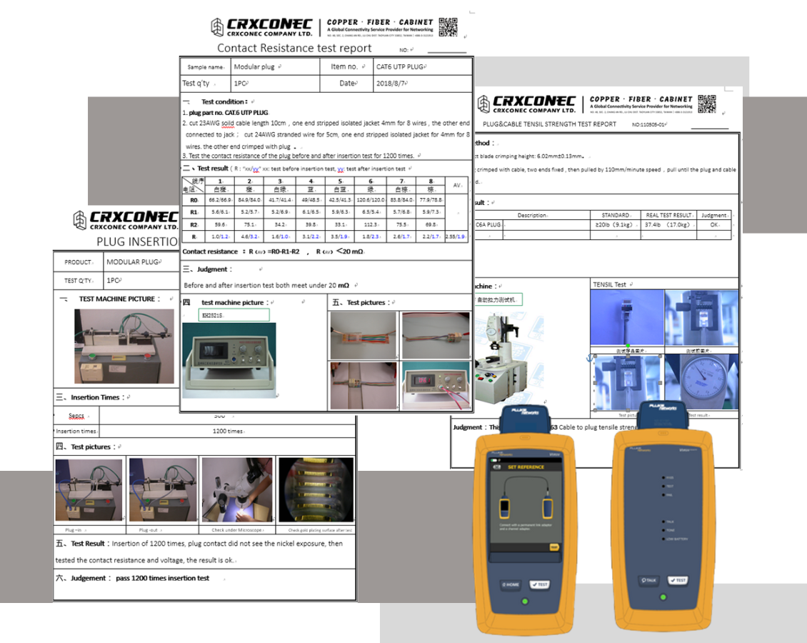Seperti yang ditunjukkan pada gambar berikut, ada sertifikasi atau verifikasi pihak ketiga untuk memastikanCRXCONECKualitas, kinerja, dan kompatibilitas kabel patch. Kami memenuhi standar kabel internasional untuk karakteristik produk dan transmisi listrik.