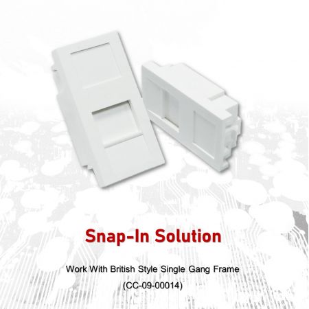 Modul Sisipan Inggris Tanpa Muatan kompatibel dengan Rangka Pelat Muka Snap-In Gang Tunggal (CC-09-00014). Fitur Snap-In memberikan fleksibilitas untuk kebutuhan jaringan. Desain "penutup penutup" pintar Modul Sisipan dirancang untuk anti-debu dan tampilan yang halus. Modul ini dapat memuat hingga 2 Modul Sisipan dalam Rangka Gang Tunggal Gaya Inggris, dan seterusnya. Jika Anda membutuhkan satu port RJ45 pada pelat muka, sisi lainnya cukup memuat modul sisipan kosong untuk menutupi lubang. Modul ini mudah dirawat dan dipasang.