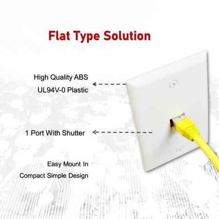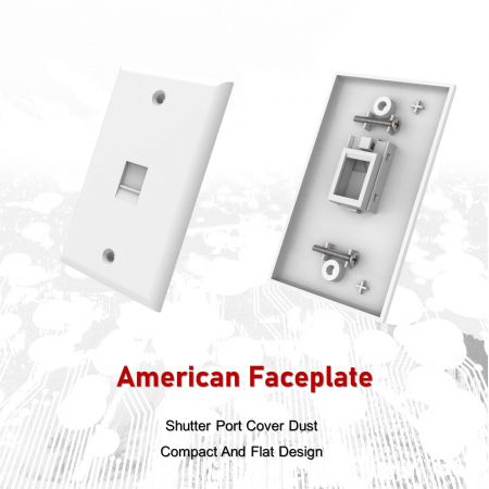 American Faceplate With Shutter menyediakan aplikasi RJ45 1 port, 2 port, dan 4 port sebagai pilihan. Desain "penutup rana" yang cerdas memberikan tampilan anti-debu dan halus.