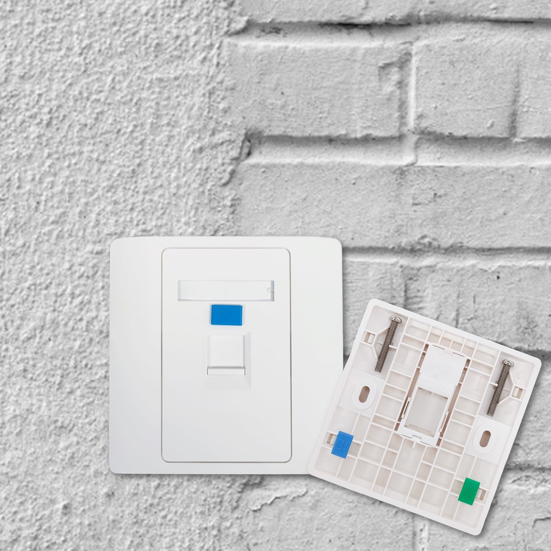 Pelat Dinding Ethernet Inggris terbuat dari material ABS berkualitas tinggi untuk memastikan kinerja dan daya tahan maksimal. Desain ringkas dengan 1 port dan ikon berwarna pada pelat muka Ethernet membuatnya tampak paling serasi dengan pelat muka RJ45 masa kini.