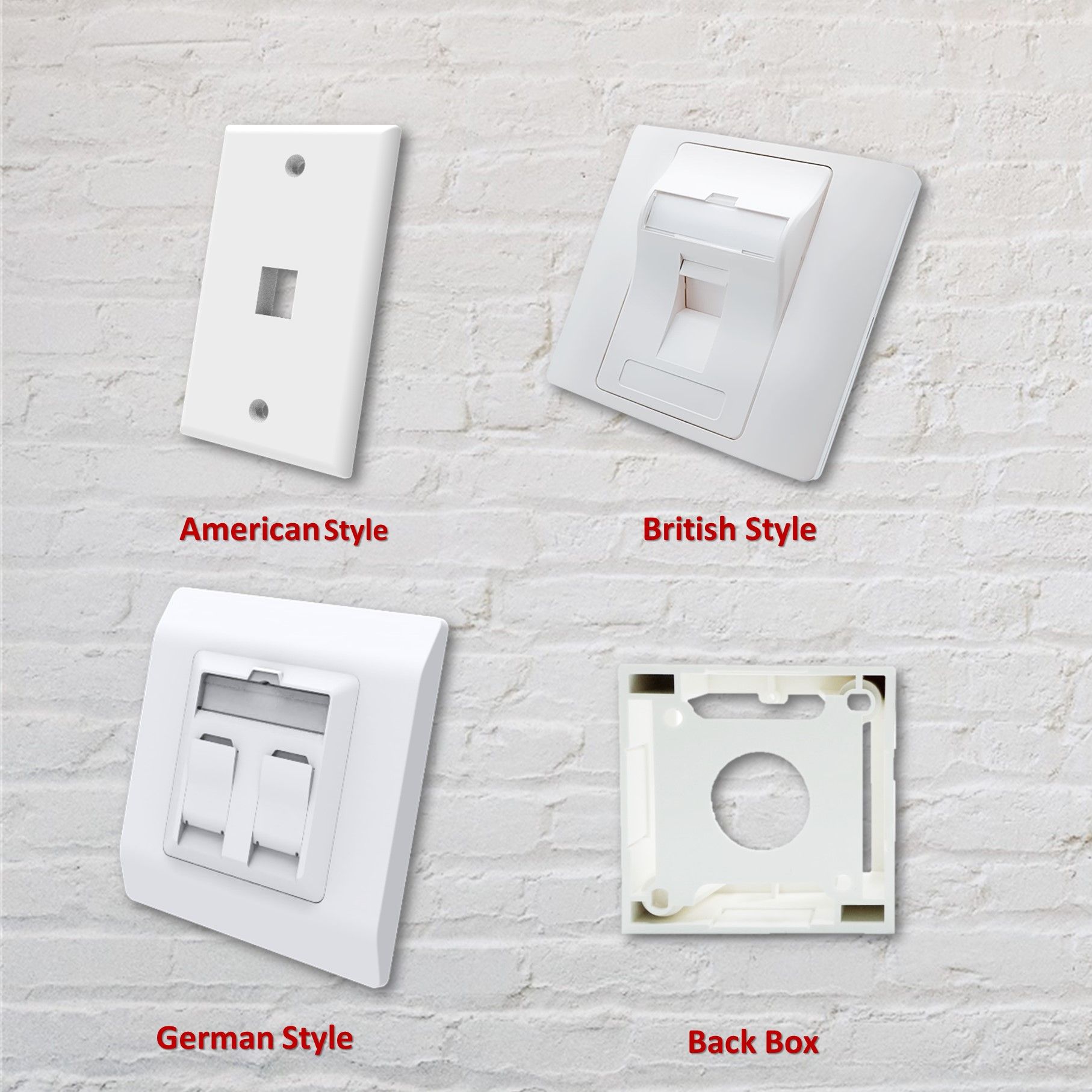 Pelat muka RJ45 Inggris tipe sudut terbuat dari plastik ABS tahan benturan tinggi, berukuran...