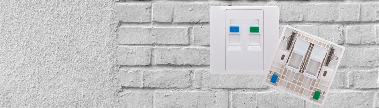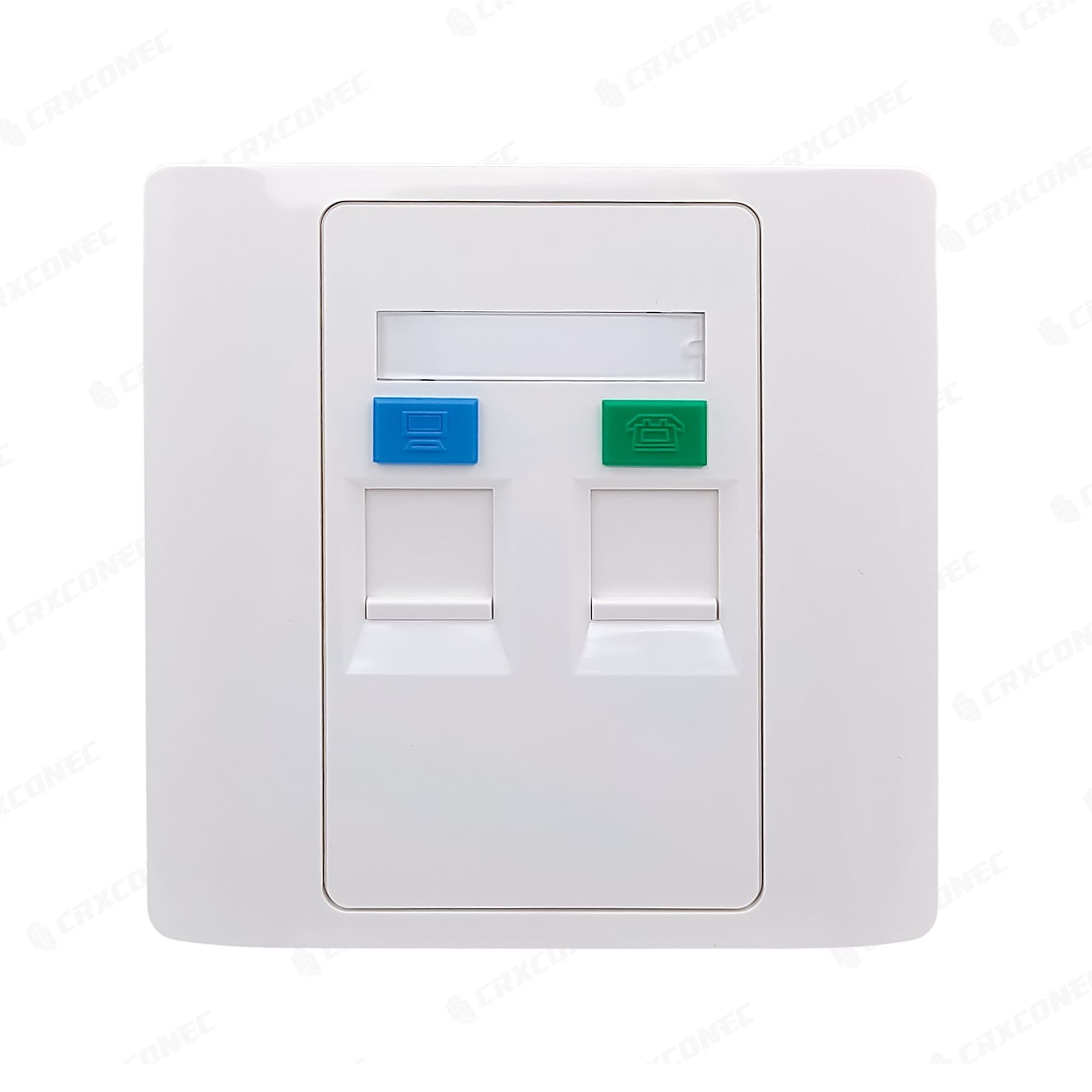 Pelat Dinding Ethernet Ikon Berwarna 2 Port Inggris