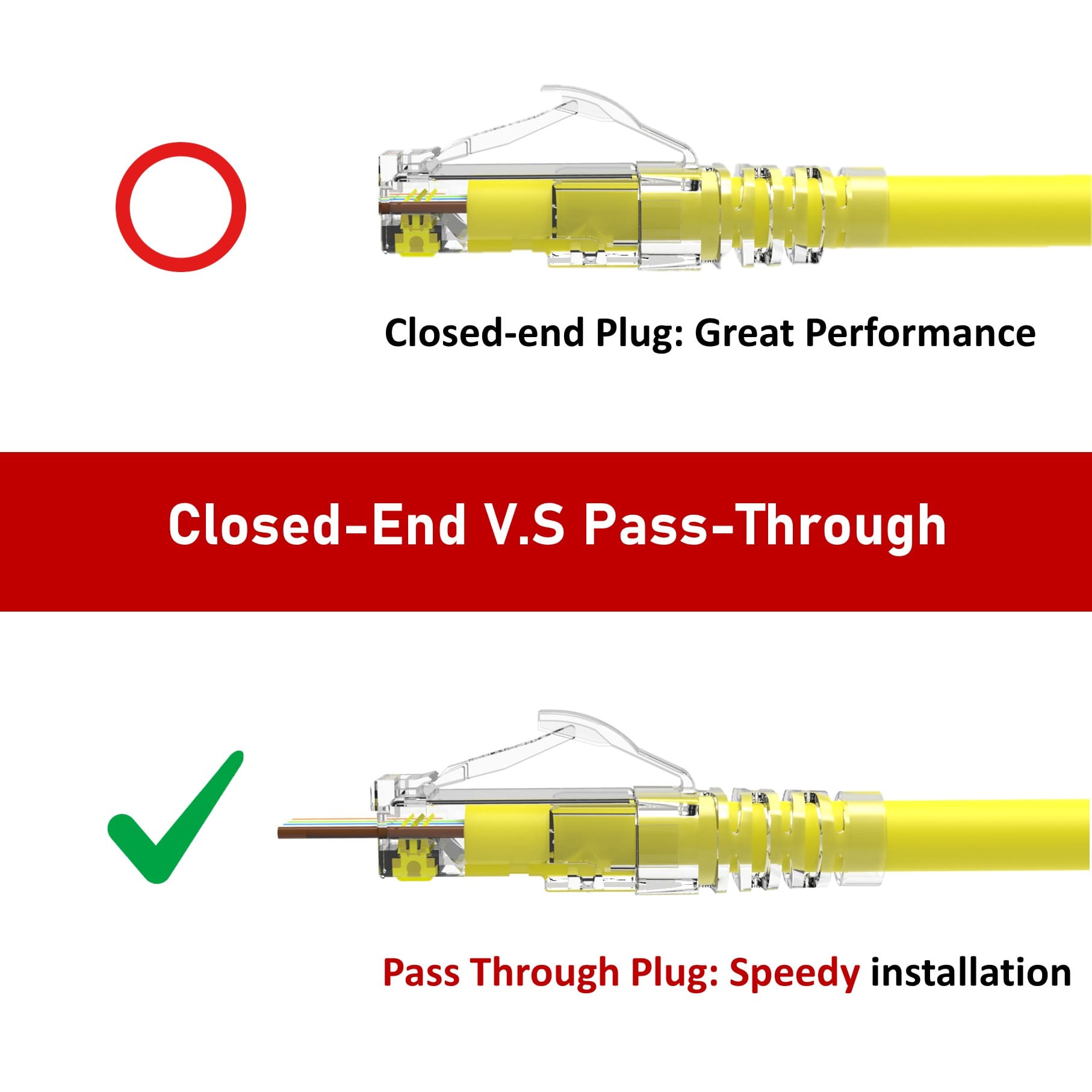 אין ספק, מחברי מעבר מאפשרים להכניס את החוטים דרך התקע והחוצה מהחזית. החוט העודף נחתך, מה שמספק חוויה מהירה ויעילה יותר בהשוואה לתקע סטנדרטי רגיל. עיצוב המעבר הקל והחכם מאפשר למתקין לשפר את ביצועי המוצר ולפשט את שלבי ההתקנה.