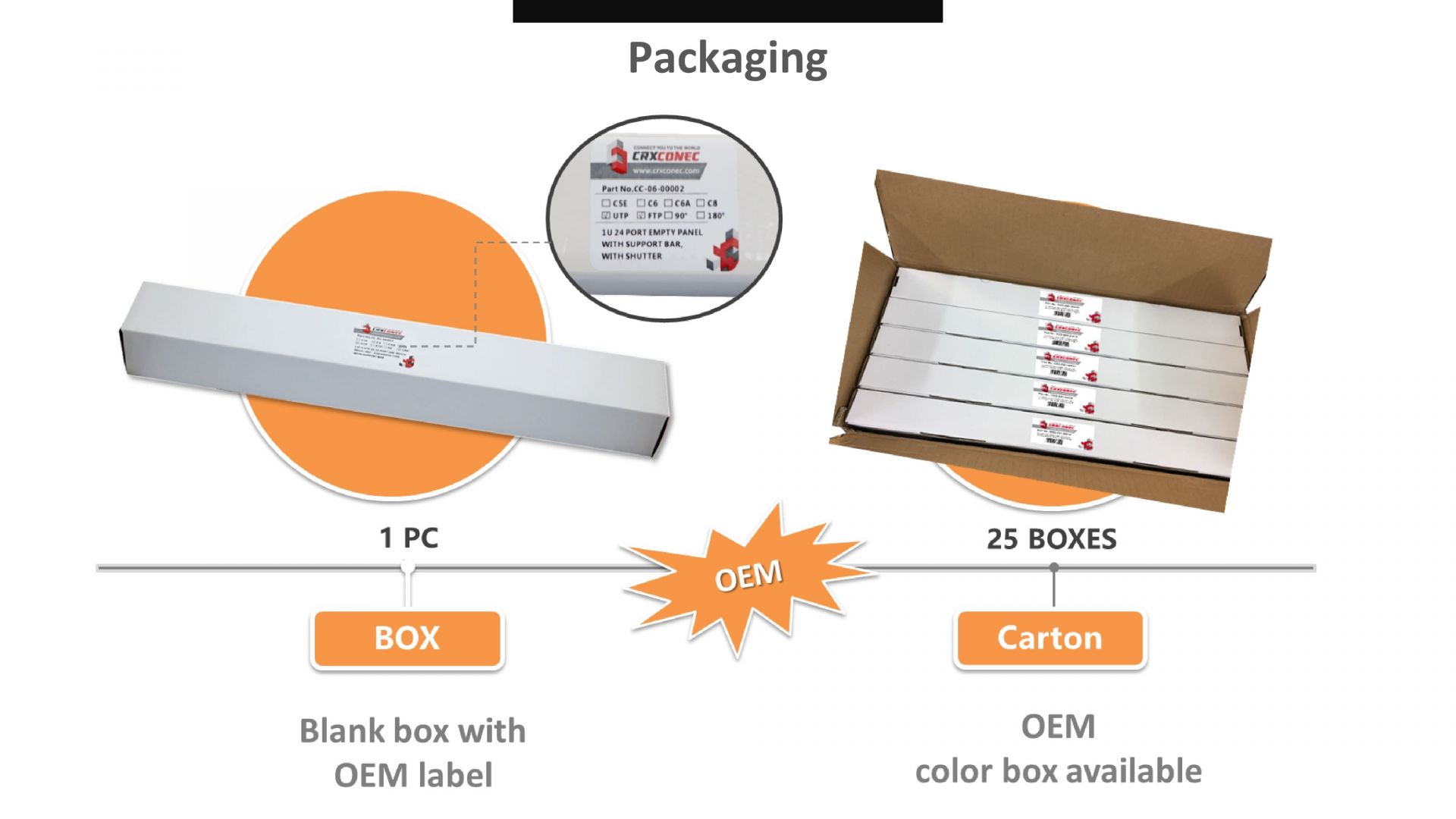 מבוסס בטייוואן מאז 1985,Crxconec Company Ltd.עומדת בחזית טכנולוגיית כבלי הסיבים, ומציעה מגוון רחב שלאופטים חיבור רשתפתרונות. המוצרים שלנו, החל מחיבור מודולרי Cat6A UTP 1U עם 24 יציאותהפנל עם מוט תמיכה, כבלי סיבים אופטיים ממצב יחיד עד רב-מצביים, פאנלי תיקון סיבים אופטיים ותיבות חלוקה, מיוצרים לביצועים אופטימליים. אימצו את עתיד הרשתות עם הכבלים המובנים של סיבים אופטיים חדשניים שלנו.