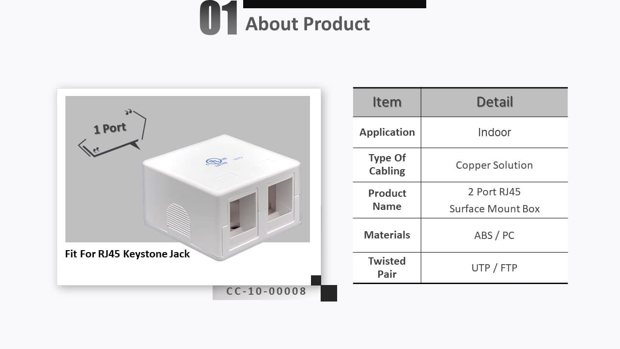 2 יציאותחיבור רשתקופסת הרכבה משטחית בצבע לבן
