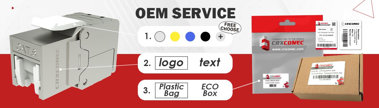 シャッター付きCat6シールドツールレスRJ45Keystone Jackは、ブランドプレゼンスを高めるためのOEMカスタマイズオプションを提供しています。IDCハウジングとラッチの色をカスタマイズすることで、リニアな接続を実現できます。RJ45ジャックは貴社のブランドアイデンティティと調和します。さらに、STP Cat6キーストーンジャックとそのパッケージにロゴを印刷するオプションにより、プロフェッショナルなイメージをさらに高めることができます。この柔軟性により、Cat6キーストーンジャックは、優れた性能と強力なブランド認知度を両立させたい企業にとって最適な選択肢となります。