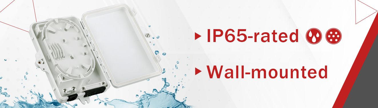 この堅牢で耐候性のあるIP65規格準拠の光ファイバー配線ボックスは、通常、建物の外壁近くに設置されるため、ラストマイルインフラにおけるFTTH(Fiber To The Home)ネットワークの導入ではよく見られます。跳ね上げ式構造を採用したこの配線ボックスは、個々の顧客構内を大規模なFTTHネットワークバックボーンに接続するための、便利で安全なアクセスポイントを提供します。
