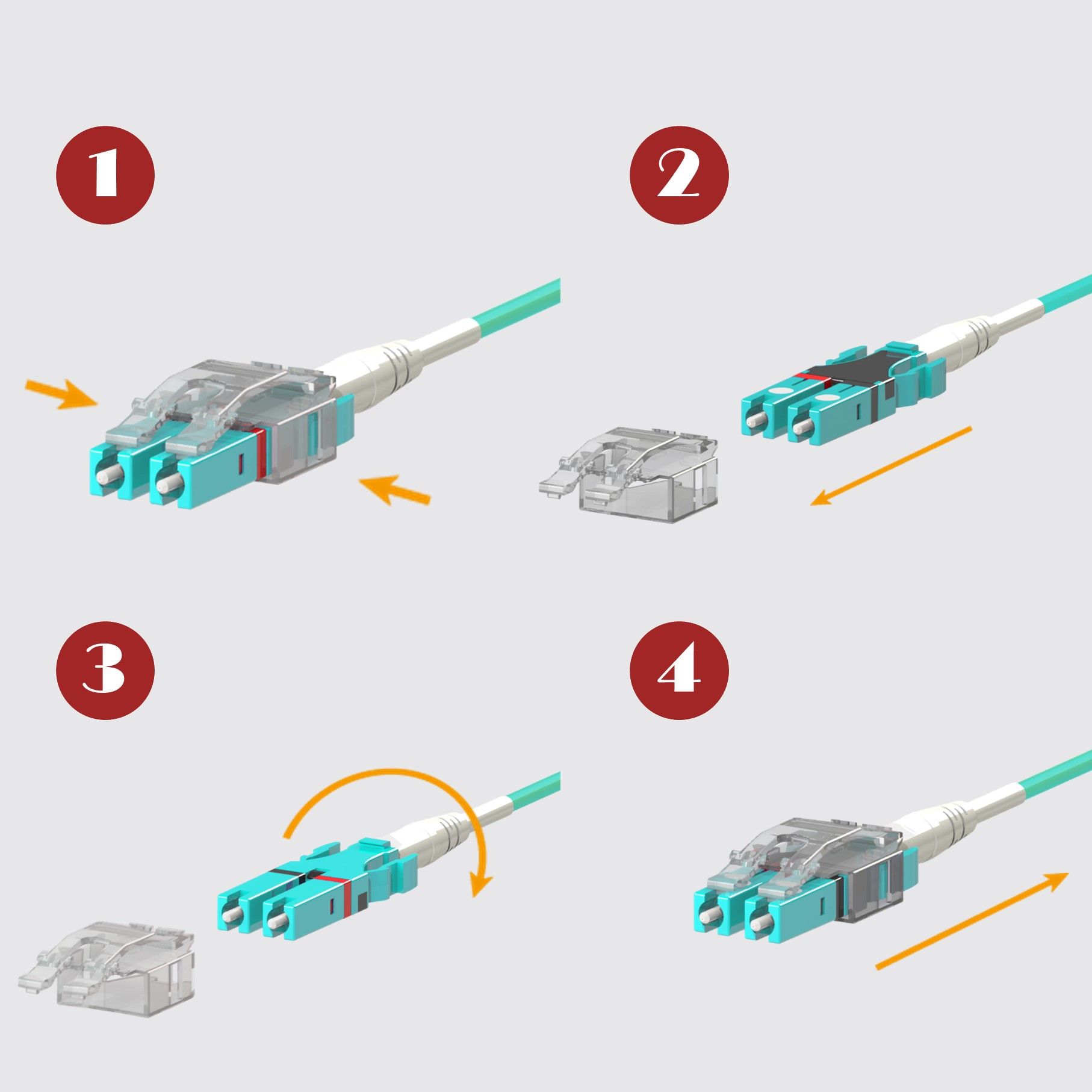 OM3 LC-LC光ファイバーパッチケーブルは、作業中の極性変更をなくすよう設計されており、光ファイバーを露出させることなく3秒間の極性反転が可能です。さらに、コネクタハウジングの赤と黒の色表示で極性を確認できます。10ギガビット、40ギガビット、100ギガビットのイーサネット伝送に対応しています。LC光ファイバーパッチケーブル工場では、カスタムLCコードも承っております。光ファイバーパッチコードの長さ、光ファイバーコネクタの種類、ブランドロゴ入りビニール袋梱包など、カスタマイズしたブランディングサービスもご提供いたします。