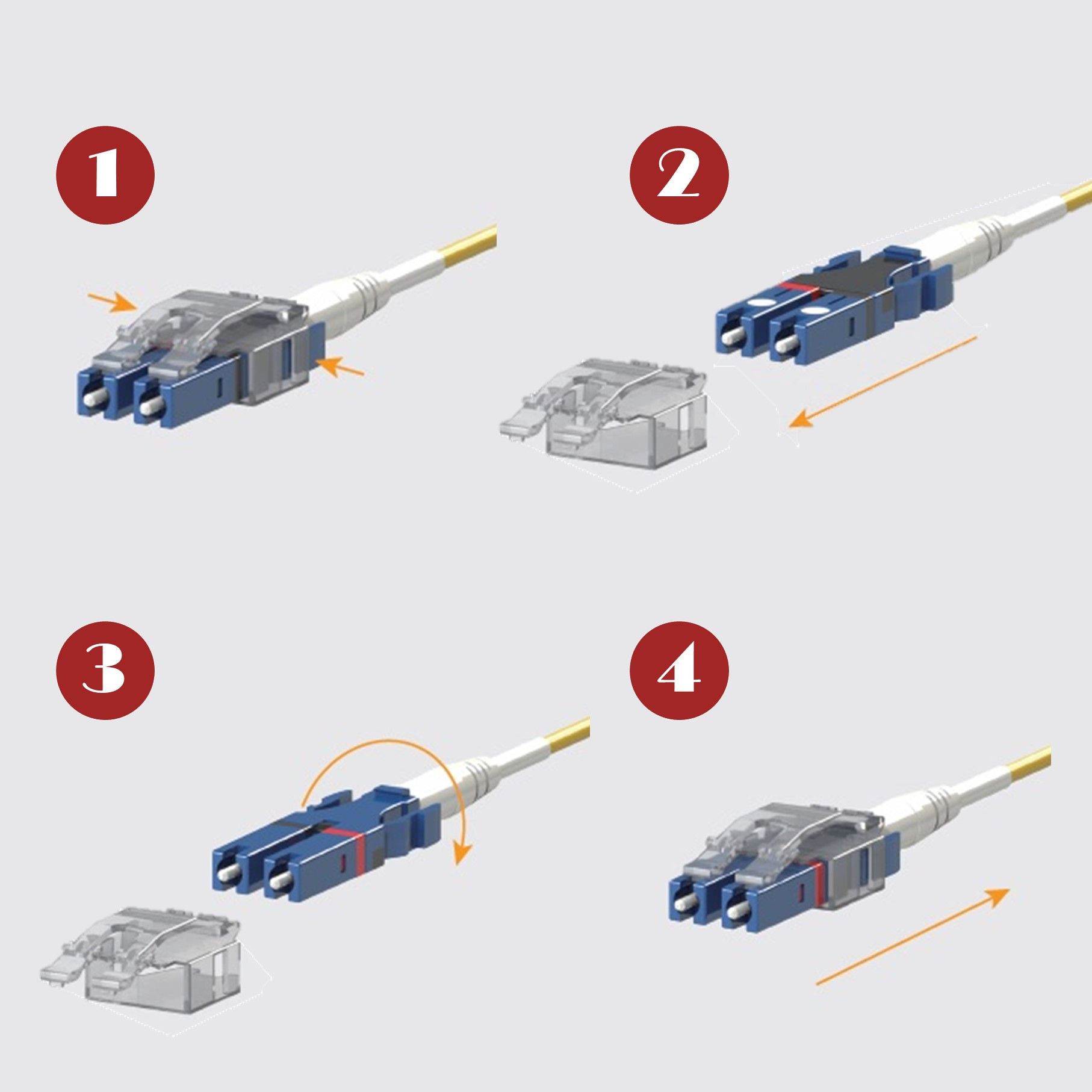 Rel-Easyのシーソーブーツ付きシングルモード光ファイバーパッチコードは、光ファイバーパッチコードの着脱を容易にするため、高密度光ファイバーパッチパネルに最適なソリューションです。極性反転機能も備えており、工具を使わずに素早く極性を反転できます。さらに、LCコネクタのユニブーツ設計により、1本のケーブルで2本の光ファイバーを伝送できます。これはデータセンターにおける高密度光ファイバーパッチングに適用され、従来のデュプレックスLC光ファイバーパッチコードと比較して、より広い設置スペースを確保できます。当社のLC-LC光ファイバーパッチコードは、IEC60793-2-10およびANSI/TIA-492AAAx規格に準拠しており、品質を確保しています。