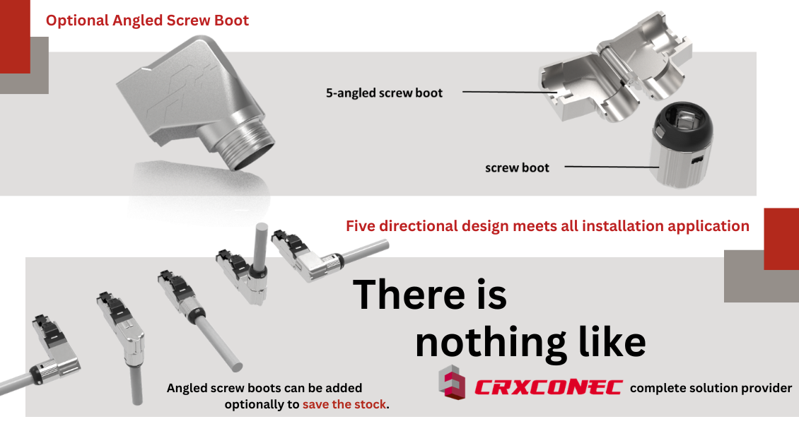 Untuk mengendalikan ruang pemasangan yang ketat atau arahan keluar tertentu, penyelesaiannya termasuk but skru 90° boleh diputar. Ini bermakna: