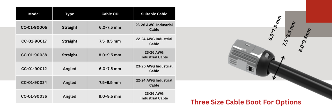 Siri ini menawarkan tiga model palam, setiap satu disesuaikan dengan berbezaKablediameter (dari 6.0mm hingga 7.5mm) dan saiz konduktor (22–26 AWG). Sama ada anda menggunakan kabel S/FTP gred industri, kabel berperisai jarak jauh atau pendawaian PoE tugas berat, anda boleh mencari yang sesuai untuk penamatan yang selamat dan boleh dipercayai.