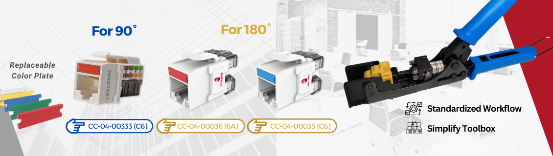 Alat Penamatan untuk Bicu Keystone Plat Berwarna 90° dan 180°| Penyelesaian Kabel & Serat Berstruktur Berkualiti Tinggi olehCRXCONEC