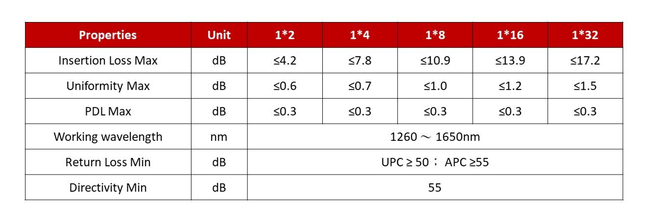 Onze 1:N PLC-splitters worden grondig getest volgens internationale normen om optimale optische prestaties te garanderen. De onderstaande grafiek toont belangrijke parameters zoals insertion loss, uniformiteit, PDL (polarisatieafhankelijk verlies) en werkgolflengte, wat onze toewijding aan het leveren van betrouwbare en hoogwaardige producten aantoont.