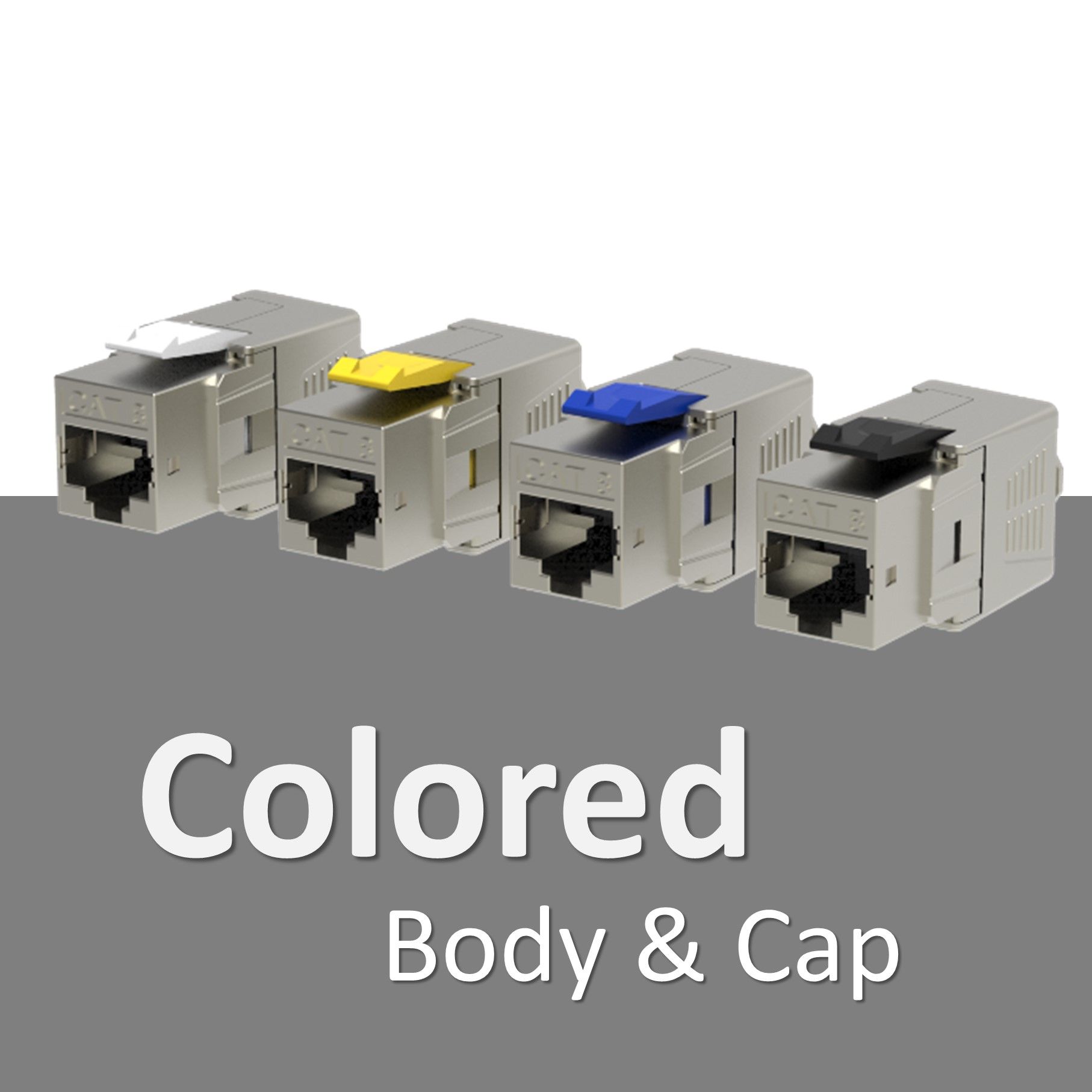 Er zijn talloze kleuren beschikbaar om zelf een onafgeschermde Cat8 keystone-aansluiting te maken die zonder gereedschap werkt. U kunt kiezen uit kleuren voor de IDC-behuizing van de keystone-aansluiting en ook voor de vergrendeling.