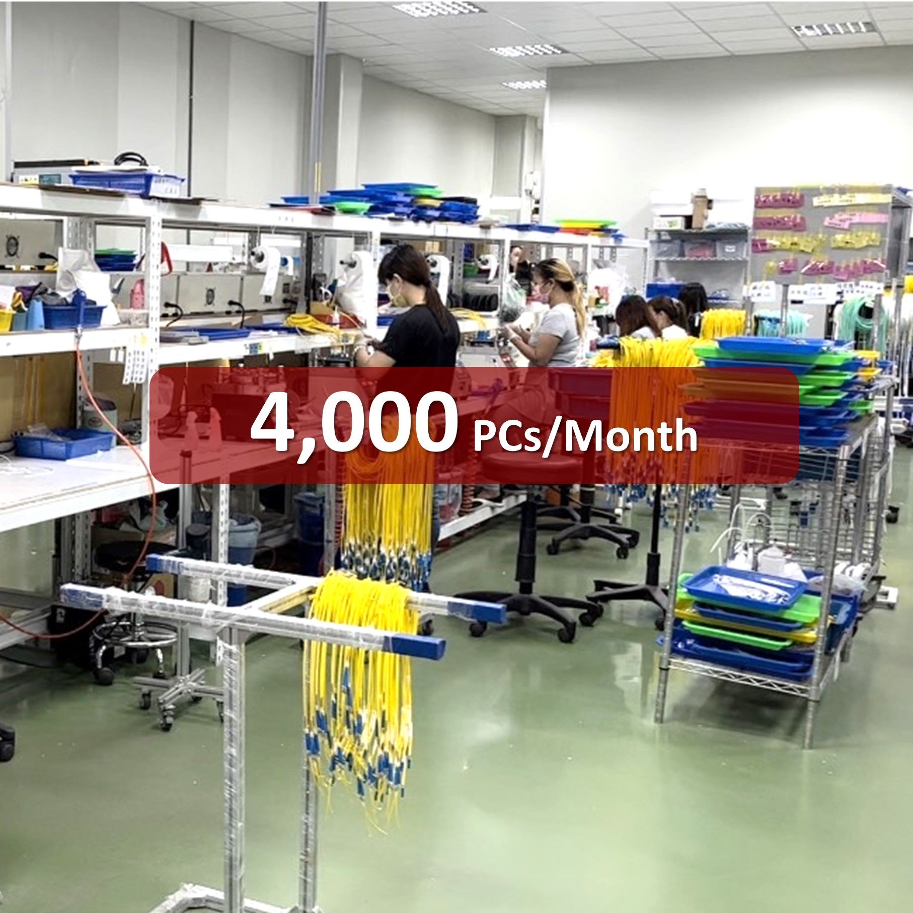 De MTP MPO glasvezel patchkabel wordt geproduceerd met een snelheid van 3000-4000 stuks per maand. Onze fabrieken kunnen MTP MPO glasvezelkabel produceren met een productielijn die het proces van begin tot eind automatiseert.