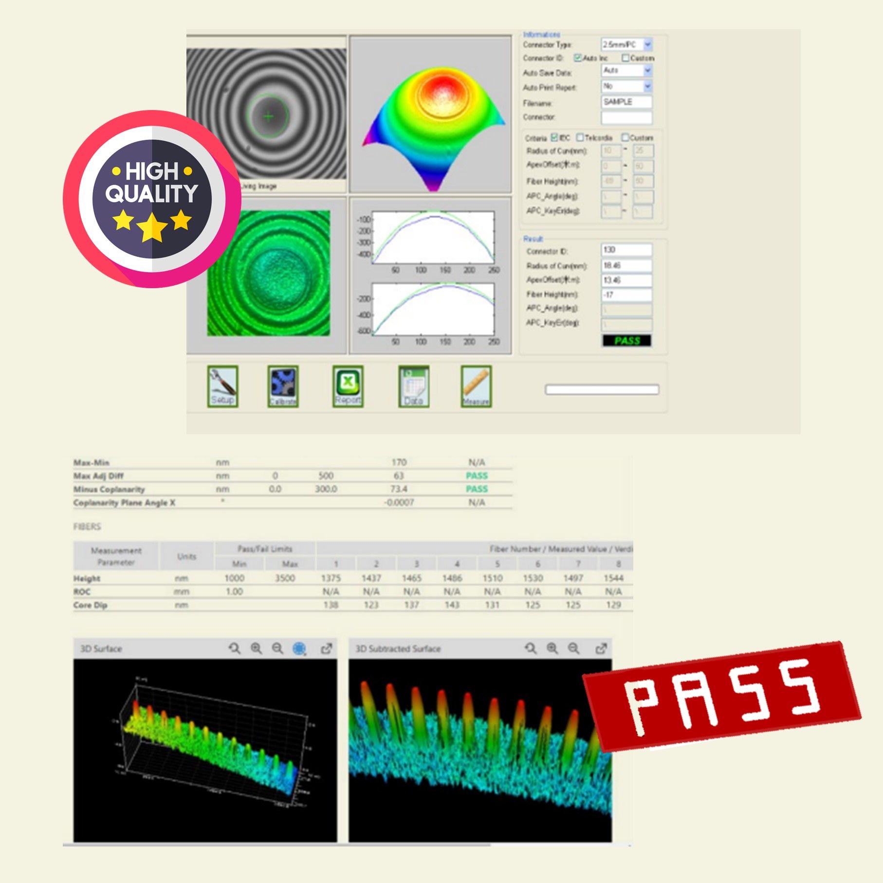 Nauwkeurig onderzoek van TAA-conforme MTP MPO-glasvezelkabels. We gebruiken de interferometer van het eindvlak van de ferrule om te controleren en een oppervlaktemicroscoop om te onderzoeken of er sprake is van defecten. Daarnaast is een insertie- en return loss-test een must voor elke glasvezelpatchkabel. Wij streven ernaar hoogwaardige MTP MPO-glasvezelpatchkabels met een heldere polariteit te leveren.