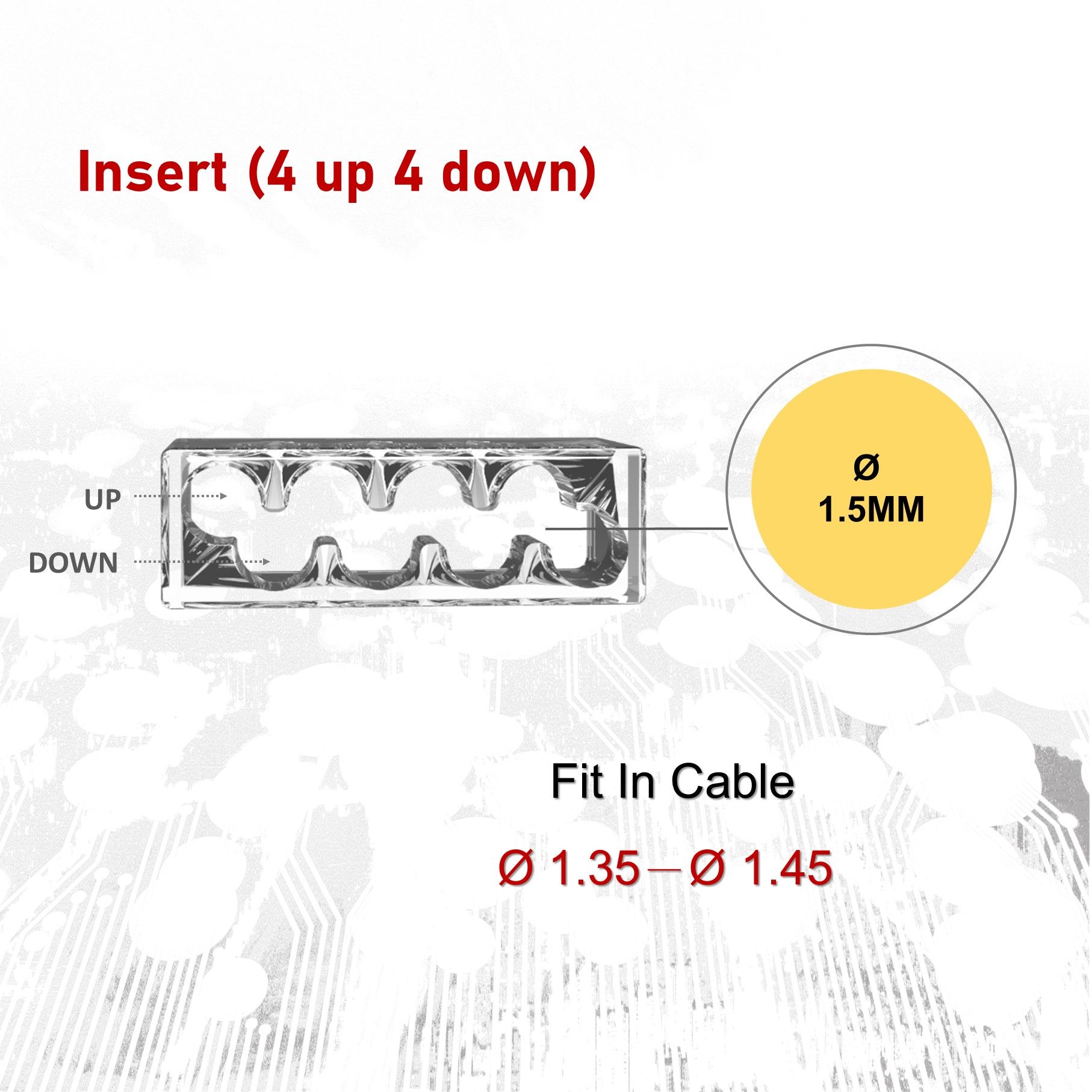 - Większy otwór na przewód: 1,5 mm, pasuje do kabla o średnicy zewnętrznej 23–26 AWG