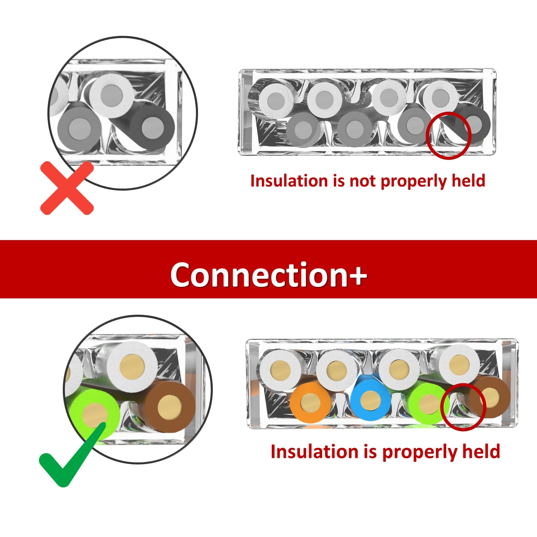 Złącze RJ45 Cat.6A z końcówką spełnia normy bezpieczeństwa i niezawodności, takie jak REACH, IEC 60603-7 oraz RoHS. 3-bolcowe styki redukują przesłuchy między parami skrętek Ethernet i zapewniają solidne połączenie. Złącze jest przeznaczone do dużych kabli litych Cat.6A lub Cat.7. Średnica zewnętrzna większego kabla LAN wynosi od 6,0 do 8,0 mm (pasuje do kabli litych 23 do 26 AWG) w sieciach Ethernet 10 Gigabit. Listwy obciążeniowe o średnicy 1,5 mm pasują do przewodów wewnętrznych o średnicy 1,35 do 1,45 mm i średnicy zewnętrznej kabla 8,0 mm.