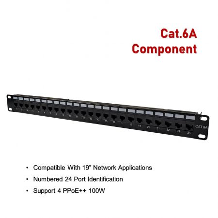 Nieekranowany panel krosowy Cat.6A z wbudowaną płytką PCB oferuje wydajność transmisji zgodną z normą ANSI/TIA 568.2-D dla Cat.6A. Obsługuje protokół szybkiego Ethernetu 10 Gigabit.