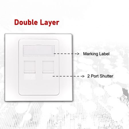 Placa frontal de 2 portas estilo britânico com design de camada dupla.