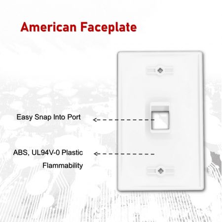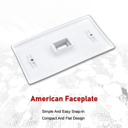 A placa de parede americana RJ45 foi projetada para encaixar no conector keystone padrão de 4,50 x 2,76 polegadas. A placa frontal americana de um único módulo cobre a abertura após a instalação, evitando curtos-circuitos causados por contato desnecessário e impedindo a entrada de poeira.