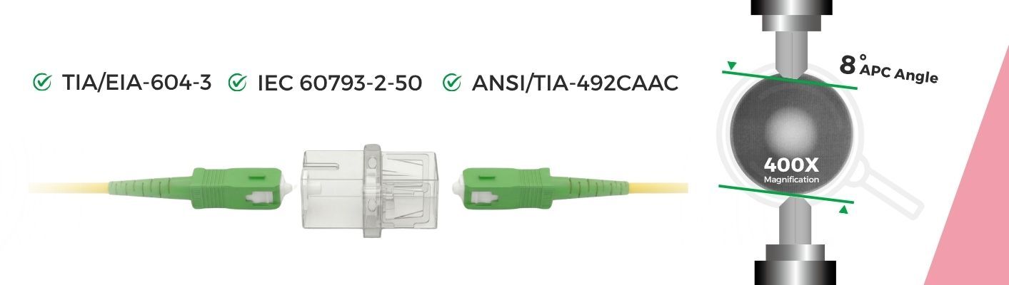 - Одножильный угловой разъем SC APC — SC APC с углом 8° для уменьшения отражений.