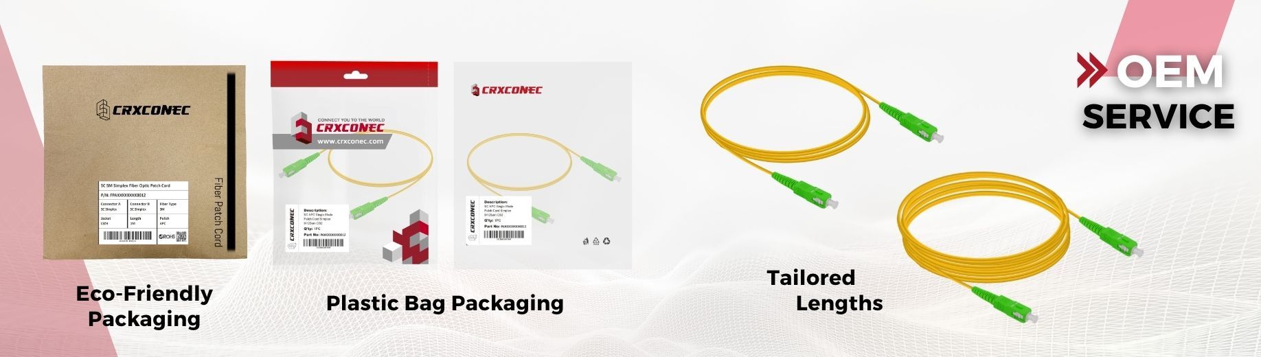 CRXCONECоказывает поддержку OEM-брендам в разработке и расширении производства однорежимных систем SC-SC.патч кордМы предлагаем широкий ассортимент продукции, включая структурированные услуги OEM и ODM, охватывающие конфигурацию продукции, маркировку и дизайн упаковки. Мы предоставляем гибкие варианты упаковки, в том числе экологичные решения и стандартную упаковку в полиэтиленовые пакеты, а также нанесение логотипа на заказ. Каждый одномодовый оптоволоконный патч-кабель конфигурируется в соответствии с требованиями бренда, обеспечивая при этом неизменно высокое качество всех одномодовых оптоволоконных патч-кабелей.