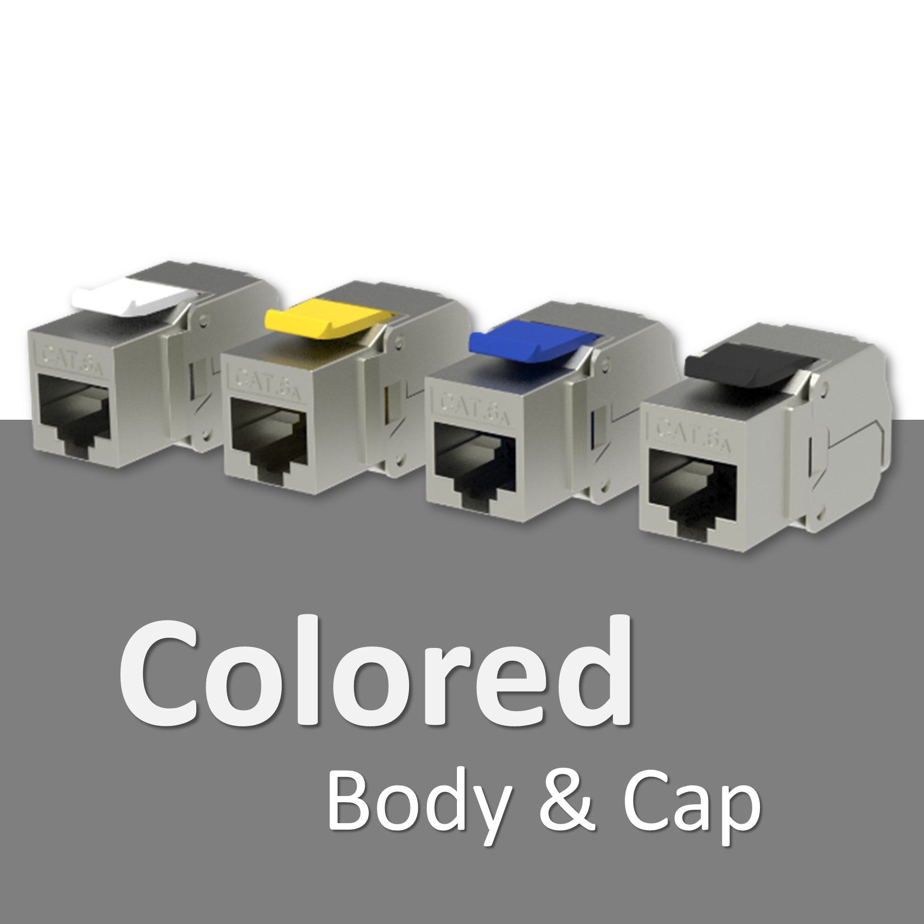 Det finns många färger att välja mellan för att skapa ditt eget verktygslösa Cat6A keystone-uttag. Du kan färglägga både keystone-uttagets IDC-hölje och spärren.