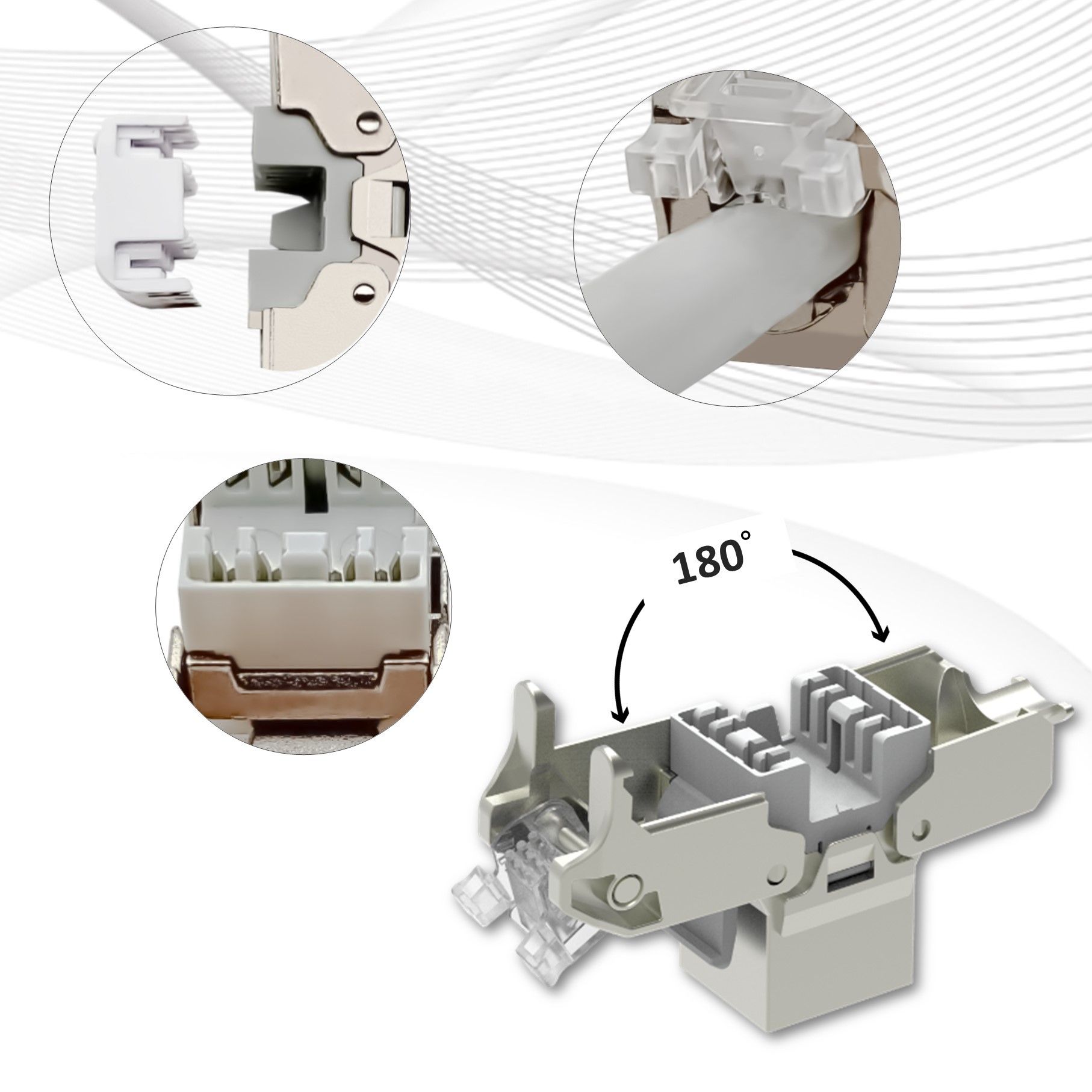 Cat6A 180 graders kabelklämma verktygslös Keystone-jack