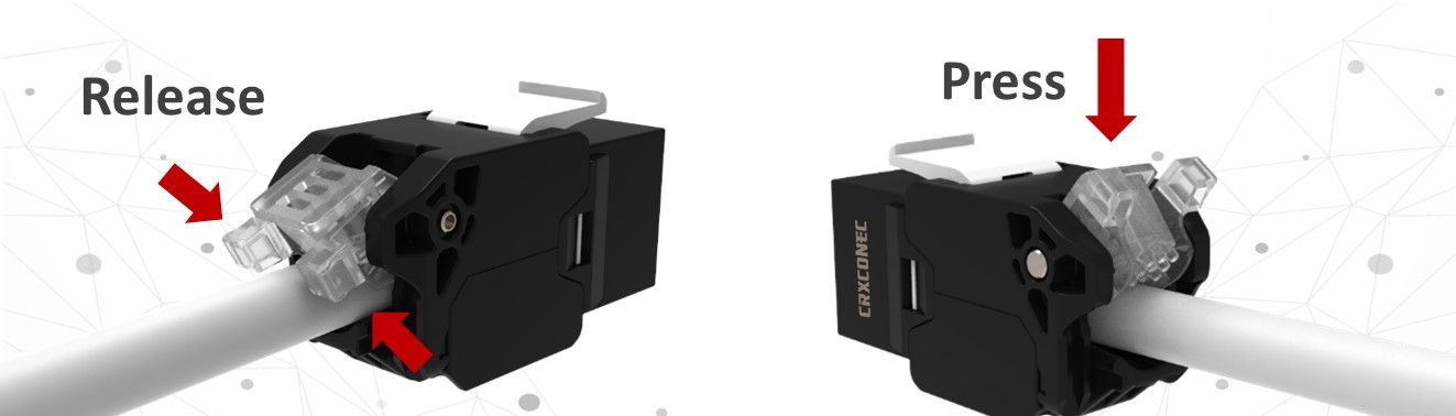 Cat6A 180 graders UTP kabelklämma verktygslös Keystone-jack| Strukturerad kabel- och fiberlösningar av högsta kvalitetCRXCONEC