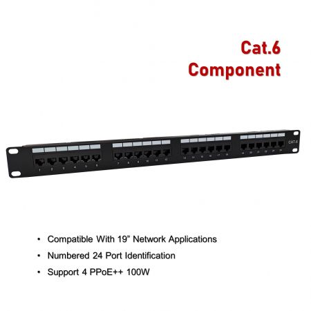 - แผงเจาะลง 180° 1U 24 พอร์ตระดับส่วนประกอบ Cat.6 UTP พร้อมแถบรองรับ spec-1
