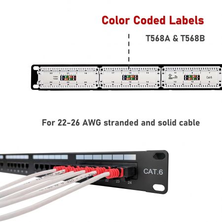 - แผงเจาะลง 180° 1U 24 พอร์ตระดับส่วนประกอบ Cat.6 UTP พร้อมแถบรองรับ spec-3