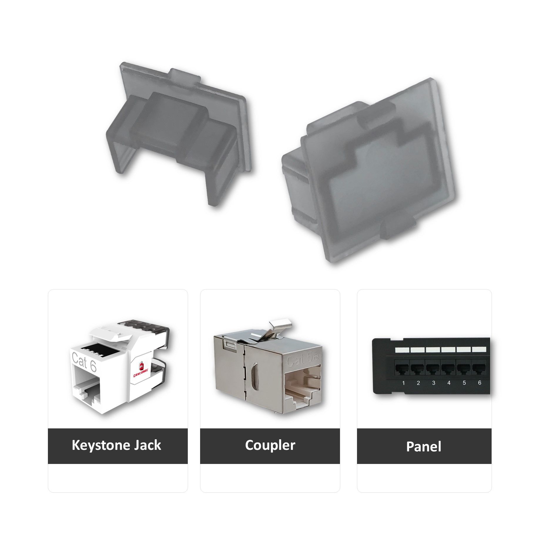 ฝาครอบแบบแบน Snap-In ช่วยป้องกันพอร์ต RJ45 จากฝุ่นละอองและยืดอายุการใช้งานของหัวเต้ารับตัวเมีย. การหัวเต้ารับตัวเมียฝาครอบป้องกันฝุ่นช่วยให้แจ็ค RJ45 ของคุณสะอาดและอยู่ในสภาพดีตลอดเวลา