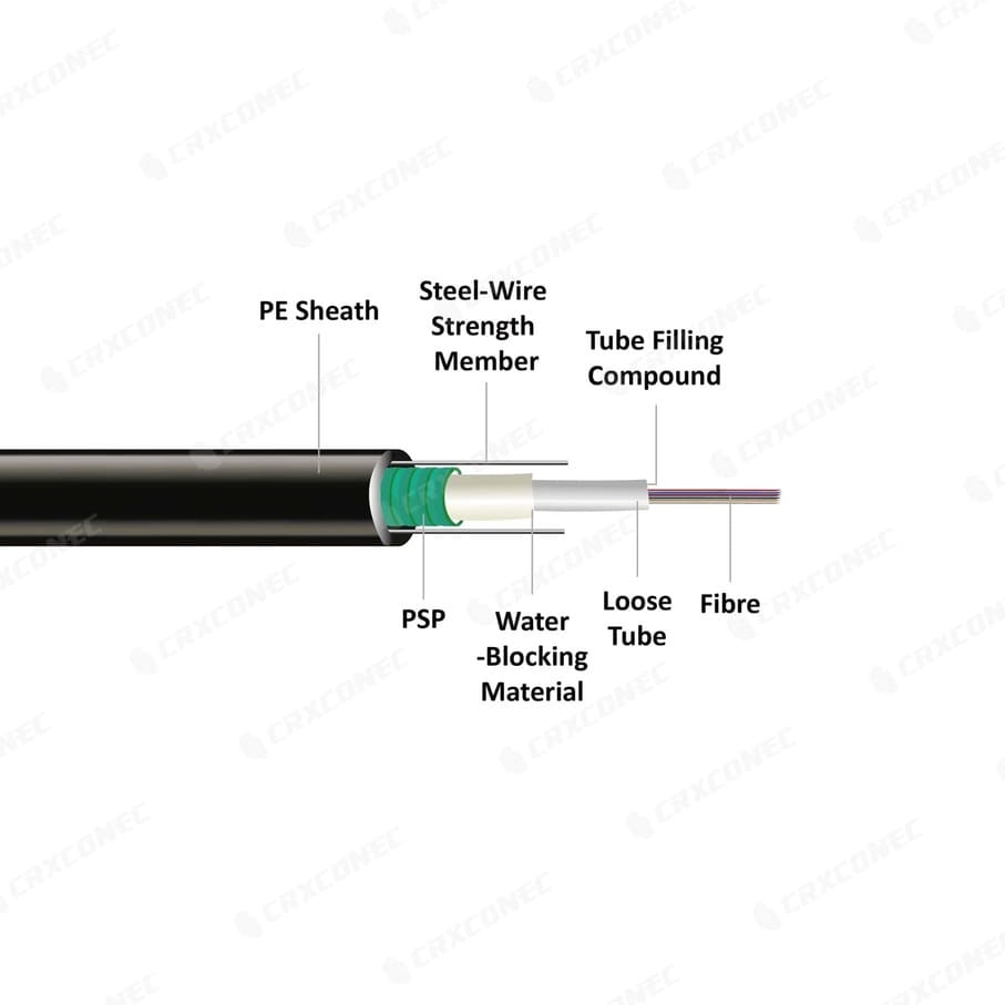 สายไฟเบอร์ออปติกหุ้มเกราะเบา GUXTW สำหรับติดตั้งภายนอกอาคาร| โซลูชันสายเคเบิลและไฟเบอร์โครงสร้างคุณภาพสูงโดยCRXCONEC