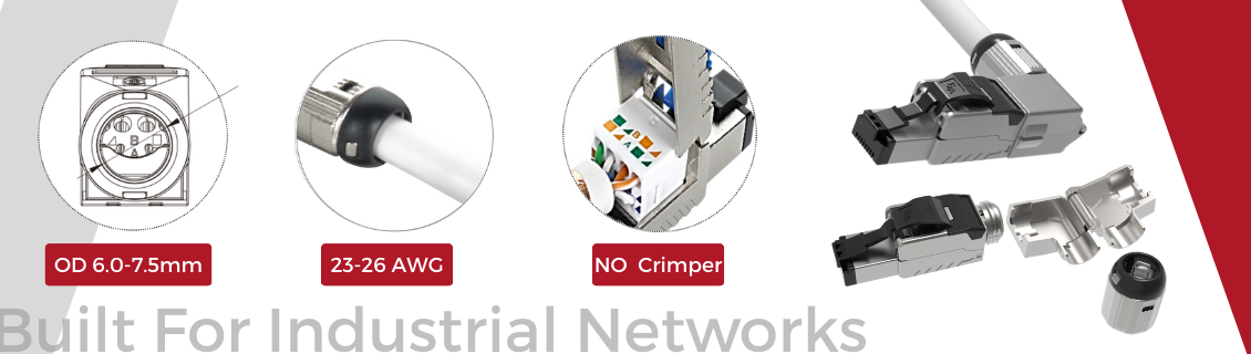 Zorlu Endüstriyel Ağlar İçin Üretilmiş Aletsiz RJ45 Konnektörü
