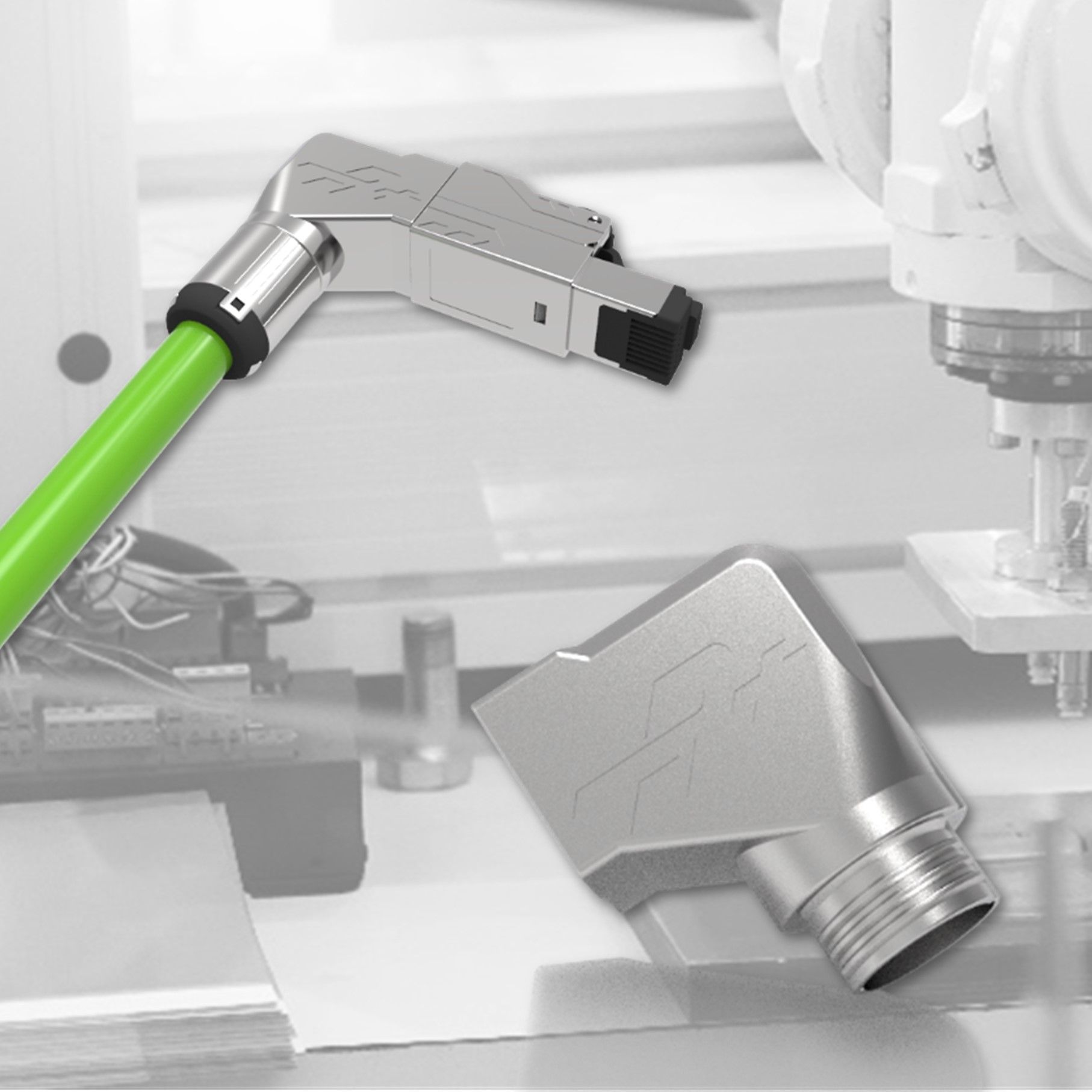 Aletsiz açılı saha sonlandırma RJ45 konnektörü için büyük dış çaplı çözüm, birçok farklı endüstriyel Ethernet kablolama uygulamasında kullanılabilir. Genellikle PLC'leri (Programlanabilir Mantık Denetleyicileri), HMI'ları (İnsan-Makine Arayüzleri) ve cihazlar arasında veri aktarımı için kullanılan diğer kontrol cihazlarını bağlamak için kullanılır ve yüksek sıcaklıklar, titreşimler ve elektrik gürültüsü gibi zorlu endüstriyel ortamlara dayanacak şekilde tasarlanmıştır. Ayrıca, sürükleme zinciri ve robot uygulamalarında yaygın olarak kullanılır ve çok yönlü kullanım olanakları sunar.