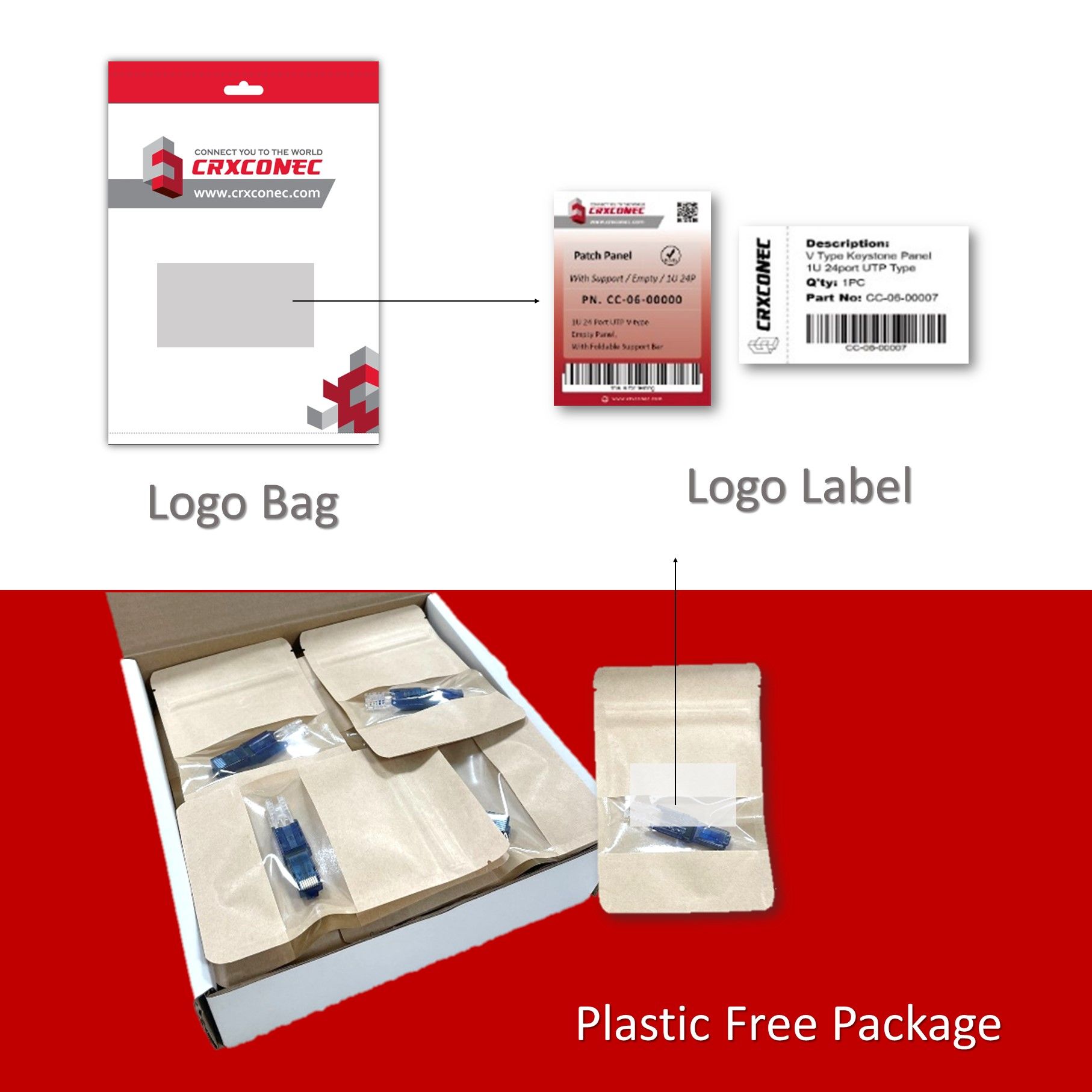 Bakır serisi ürünlere logo yerleştirme, kendi marka logolu çantalarınızı özelleştirme ve ambalaj tasarımı konusunda Marka OEM hizmetleri sunuyoruz. Ayrıca, veri sayfaları ve katalog tasarımı konusunda da destek sağlıyoruz.CRXCONECkablolama ürünleri yelpazesiyle kendi markanızı yaratmanız için tek elden hizmet sunan güvenilir bir OEM tedarikçisidir.