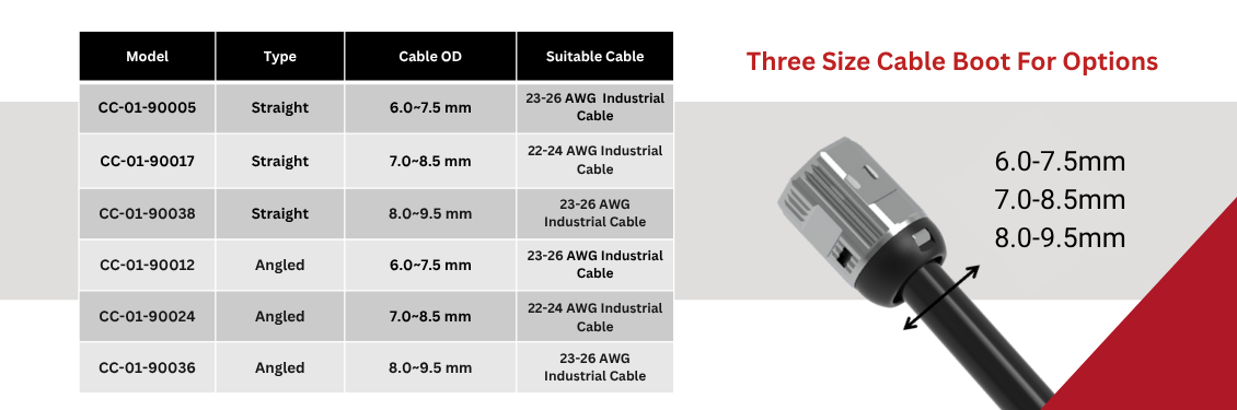 Doğru Aletsiz Endüstriyel RJ45 Konnektörünü bulmak, kablonuzun dış çapına (OD) bağlıdır. Verimli saha sonlandırma ve istikrarlı performans için, güvenli bir şekilde oturan bir fiş seçmek çok önemlidir. İster standart Ethernet ister kalın endüstriyel kablolar kullanıyor olun, 6,0 mm ile 9,5 mm arasında değişen OD'ler için seçenekler mevcuttur. Birçok model ayrıca açılı bağlantıları ve PoE++ uygulamalarını destekleyerek yüksek hızlı ve yüksek güçlü ortamlar için uygundur. Kurulumunuz için en uygun konnektörü seçmek için verilen referans tablosunu kullanın.