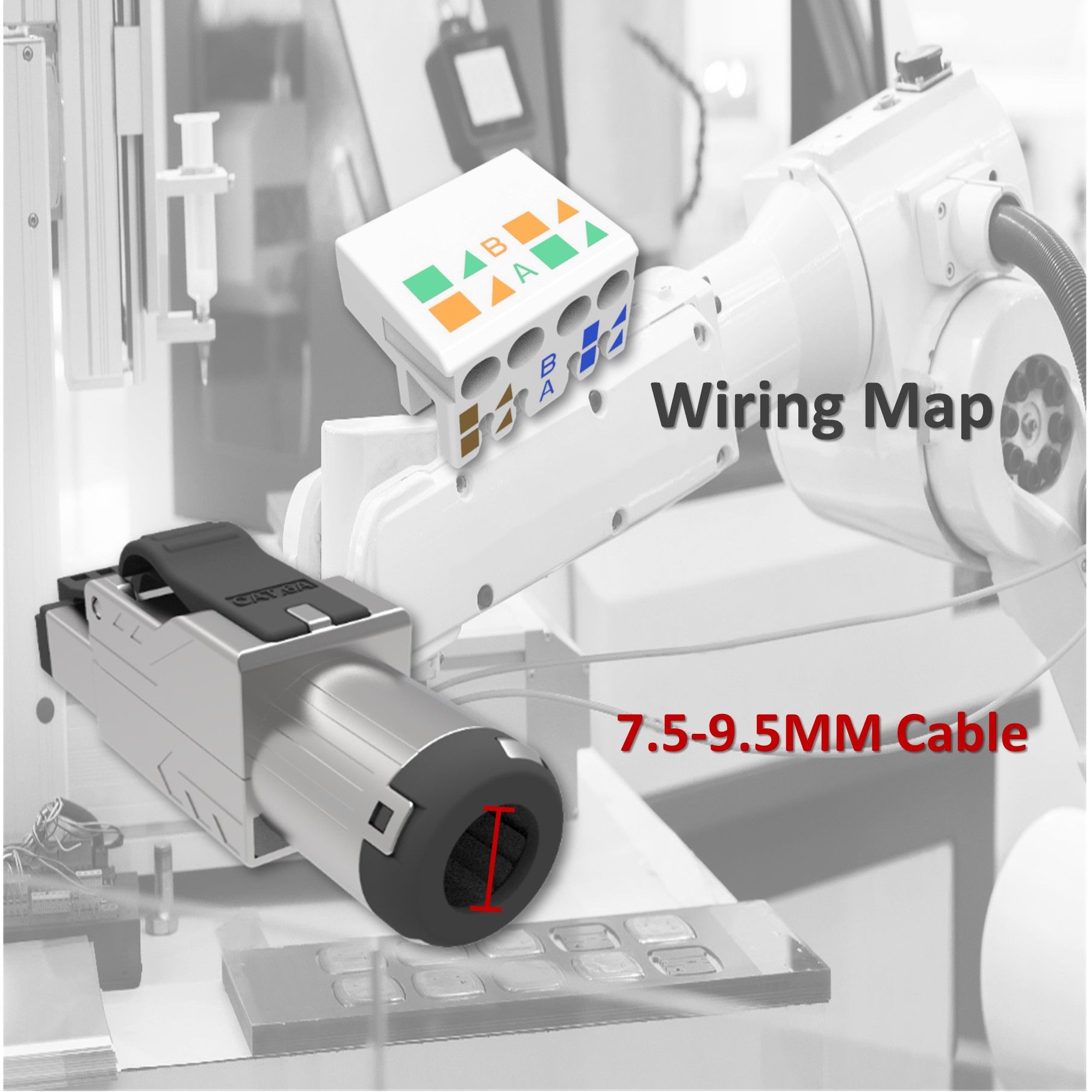 Aletsiz saha sonlandırma RJ45 konnektörü için büyük dış çaplı çözüm, birçok farklı endüstriyel Ethernet kablolama uygulamasında kullanılabilir. Genellikle PLC'leri (Programlanabilir Mantık Denetleyicileri), HMI'ları (İnsan-Makine Arayüzleri) ve cihazlar arasında veri aktarımı için kullanılan diğer kontrol cihazlarını bağlamak için kullanılır ve yüksek sıcaklıklar, titreşimler ve elektrik gürültüsü gibi zorlu endüstriyel ortamlara dayanacak şekilde tasarlanmıştır. Ayrıca, sürükleme zinciri ve robot uygulamalarında yaygın olarak kullanılır ve çok yönlü kullanım olanakları sunar.