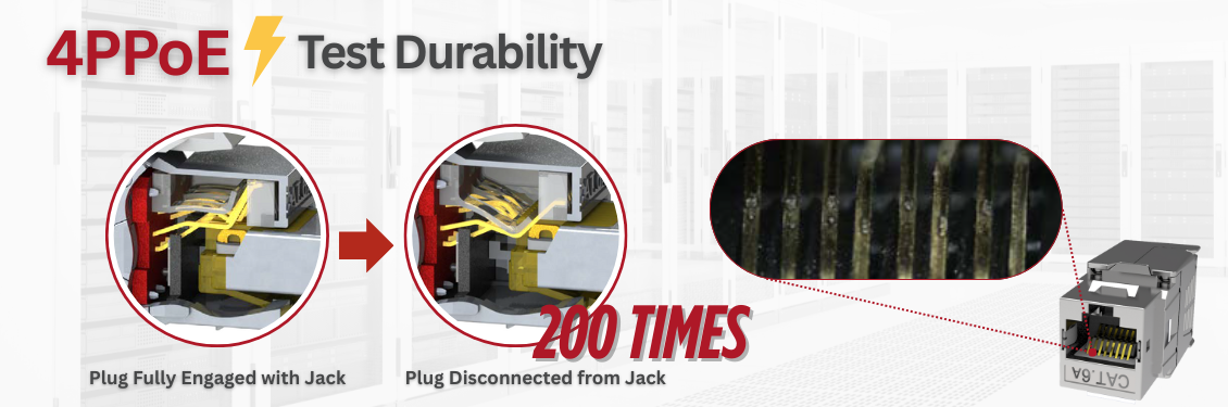 TheCRXCONECБезінструментальний роз'єм Cat6A STP Keystone підтримує IEEE 802.3bt Type 4 (PoE++) та Gigabit Ethernet, що робить його ідеальним для мережевих інсталяцій з високою потужністю. Випробуваний у нашій власній лабораторії, він витримує понад 200 циклів з'єднання при 2 амперах на контакт, забезпечуючи стабільну продуктивність PoE потужністю 100 Вт. Сумісний з одножильними та багатожильними кабелями 23–26AWG, він відповідає стандартам IEC 60603-7. Пружинні контактні штифти забезпечують стабільне з'єднання та низькі втрати сигналу. Створений для надійності, цей безінструментальний роз'єм Cat6A є надійним вибором для вимогливих застосувань PoE.